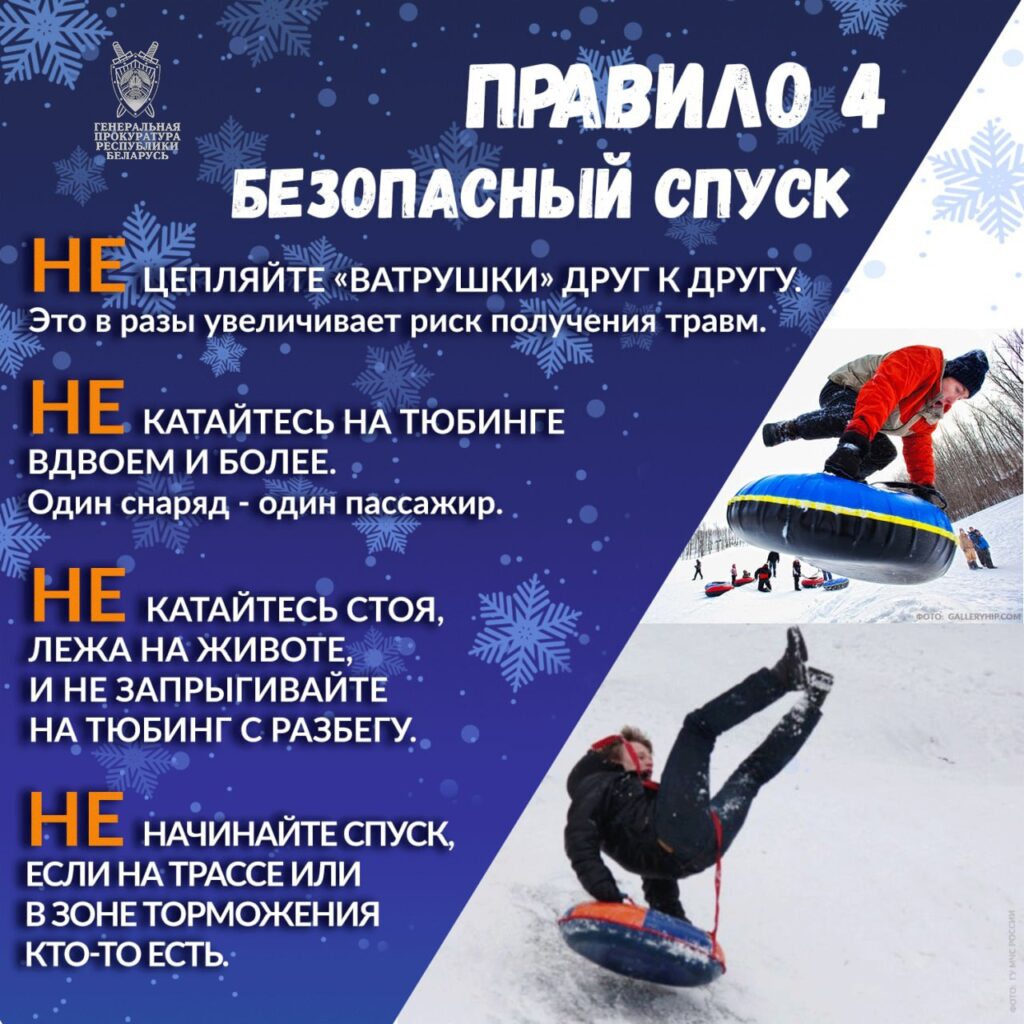 ❗️ Катание на тюбингах и санках – наиболее популярные виды зимнего развлечения среди детей и взрослых. Однако чтобы травмы не омрачили хорошего настроения, всегда важно помнить об элементарных правилах безопасности.